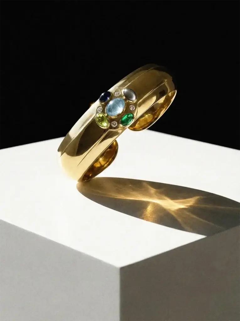Inspired by their Orthodox heritage and the quiet power of Byzantine aesthetics, we designed a bangle that holds her birthstone at the centre, surrounded by the stones of her loved ones, each placement chosen with intention and meaning.